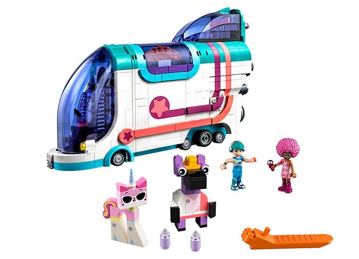 Alatura-te lui Emmet, Chad, Amber si Zebe, si pleaca intr-o excursie cu distractivul Autobuz de petrecere pop-up! Pune-l pe Zebe in cabina. Deschide acoperisul si partile laterale ale autobuzului distractiv, scoate difuzoarele si globul disco si porneste petrecerea! Bea un nectar de fructe, aprinde luminile disco, apoi arata-ti miscarile de dans pe ringul de dans rotativ!