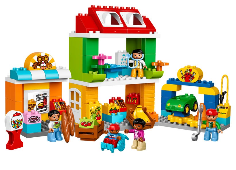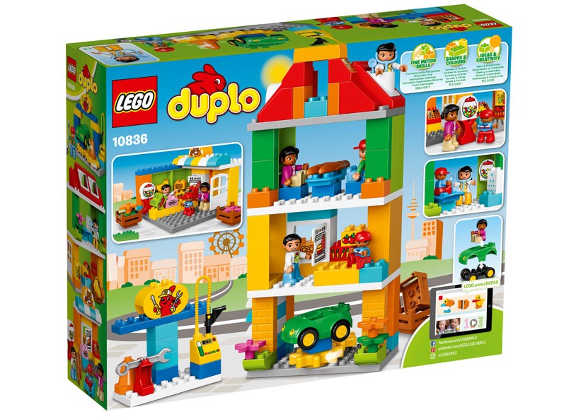 Interpreteaza scene din viata reala in LEGO DUPLO Orasul meu: o lume usor de recunoscut cu figurine DUPLO moderne. Descopera Piata mare a orasului cu copilasul tau - sunt atat de multe de vazut si facut! Invarte rotile dintate pentru a roti masina pentru mecanic, cumpara produse proaspete la brutarie si la magazinul de alimente, sau mergi la medic pentru o consultatie! Include cinci figurine DUPLO.