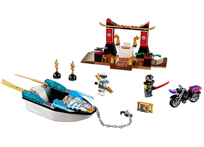 Sari in barca lui Zane si pleaca cu el in cursa pentru harta care duce la masca! Goneste spre templu fara a-l scapa din ochi pe Chopper Maroon, unul dintre Fiii lui Garmadon, pe motocicleta lui. Iata-l, o ia inainte! Opreste barca la doc si alearga pe scari in templu, dar atentie la capcane! Fereste-te de cutitele rotitoare si de serpi, apoi foloseste carligul din barca pentru a apuca harta. Vei ajunge oare la ea inaintea lui Chopper Maroon?